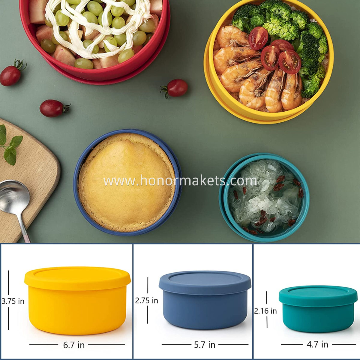 Silicone Food Container: These food grade hard silicone storage containers are versatile and durable. Use store, freeze, microwave, and bake. They're great for leftovers, lunches, camping, and snacks.